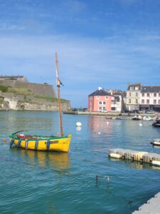 Voilà longtemps que je rêvais de parcourir le sentier des douaniers breton. Parmi les différentes options, Belle-Île s’était imposée : le souvenir lointain d’une escale en voilier avec mon père m’avait donné envie d’y revenir. La magie de quitter le continent et la satisfaction de réaliser une boucle nous ont convaincus. Partir sur une île, nous le faisons à chaque passage de la Manche, mais les dimensions de la Grande-Bretagne le font volontiers oublier (jusqu’à l’occasionnelle fermeture intempestive du tunnel). À peine arrivés sur cette île de Petite-Bretagne, la rengaine de la chanson de Laurent Voulzy s’enclenche et m’agace. D’ailleurs, pourquoi dit-on Belle-Île-en-Mer ? On ne dit pas Quiberon-en-terre.
