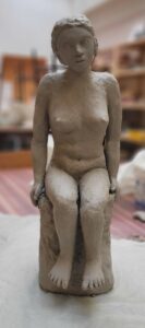 Faire couler les relents d’émotion dans ses doigts à l’atelier de terre pour modeler une nouvelle tête sympathique à une jeune femme nue assise sur un rocher. Le troisième visage, les autres me rebutaient. Retrouver ses amies Cécile et D. pour déjeuner et s’entendre dire : « Tu as une petite tête. »